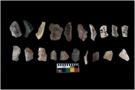 | Description / विवरण | Flake - There are n 20 flakes tool; there are multidirectional irregular scar pattern on them; made of short flakes and all twenty have tapering edges. |