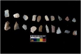 | Description / विवरण | There are n 20 flakes tool; there are multidirectional irregular scar pattern on them; made of short flakes and all four have tapering edges |
