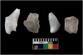| Description / विवरण | There are n 4 flakes tool; there are multidirectional irregular scar pattern on them; made of short flakes and all four have tapering edges. |