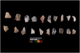 | Description / विवरण | There are n 20 flakes tool; there are multidirectional irregular scar pattern on them, made of short flakes and all have tapering edges. |