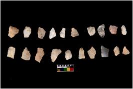 | Description / विवरण | There are n 20 flakes tool; there are multidirectional irregular scar pattern on them, made of short flakes and all have tapering edges. |