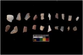 | Description / विवरण | There are n 20 flakes tool; there are multidirectional irregular scar pattern on them; made of short flakes and all four have tapering edges |