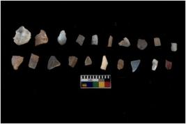 | Description / विवरण | There are n 20 flakes tool; there are multidirectional irregular scar pattern on them; made of short flakes and all four have tapering edges |