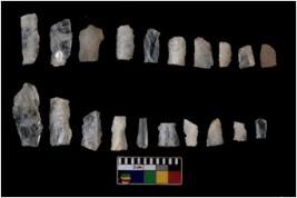 | Description / विवरण | There are n 20 flakes tool; there are multidirectional irregular scar pattern on them, made of short flakes and few have tapering edges. |