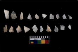 | Description / विवरण | There are n 20 flakes tool; there are multidirectional irregular scar pattern on them; made of short flakes and few have tapering edges. |