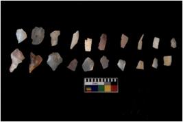| Description / विवरण | Specimen of flakes tool with prominent flaking marks. It made up of a short flakes with sides trimmed. |