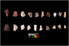 | Description / विवरण | There are n 20 flakes tool; there are multidirectional irregular scar pattern on them, made of short flakes and all have tapering edges. |