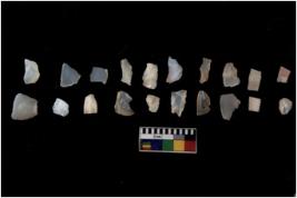 | Description / विवरण | There are n 20 flakes tool; there are multidirectional irregular scar pattern on them; made of short flakes and all four have tapering edges |