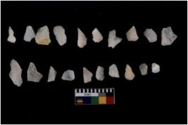 | Description / विवरण | There are n 20 flakes tool; there are multidirectional irregular scar pattern on them; made of short flakes and few have tapering edges. |