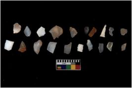 | Description / विवरण | Specimen of flakes tool with prominent flaking marks. It made up of a short flakes with sides trimmed. |