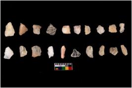 | Description / विवरण | There are n 20 flakes tool; there are multidirectional irregular scar pattern on them, made of short flakes and all have tapering edges. |