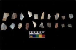 | Description / विवरण | Specimen of flakes tool with prominent flaking marks. It made up of a short flakes with sides trimmed. |