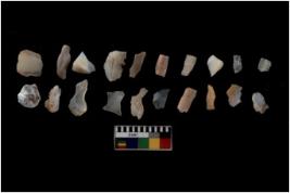 | Description / विवरण | There are n 20 Flake tool; There are multidirectional irregular scar pattern on them. few have blunt edges, Some of them are tapering at one end. |