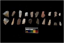 | Description / विवरण | Specimen of flakes tool with prominent flaking marks. It made up of a short flakes with sides trimmed. |