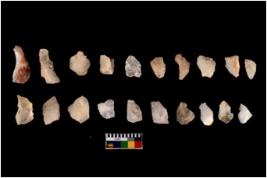 | Description / विवरण | There are n 20 flakes tool; there are multidirectional irregular scar pattern on them, made of short flakes and all have tapering edges. |