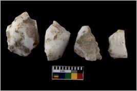 | Description / विवरण | There are n 4 cores; there are multidirectional irregular scar pattern on them. The reverse bulb and platform can be seen. |