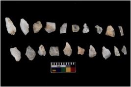| Description / विवरण | There are n 20 flakes tool; there are multidirectional irregular scar pattern on them; made of short flakes and all four have tapering edges. |