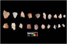 | Description / विवरण | There are n 20 flakes tool; there are multidirectional irregular scar pattern on them, made of short flakes and all have tapering edges. |