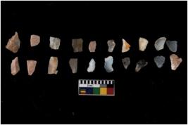 | Description / विवरण | There are n 20 flakes tool; there are multidirectional irregular scar pattern on them; made of short flakes and all four have tapering edges |