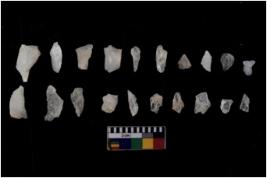| Description / विवरण | There are n 20 Flake tool; There are multidirectional irregular scar pattern on them. few have pointed functional top. |