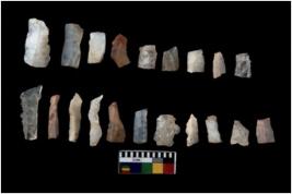 | Description / विवरण | There are n 20 Flake tool; There are multidirectional irregular scar pattern on them. few have blunt edges, Some of them are tapering at one end. |