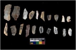 | Description / विवरण | There are n 20 flakes tool; there are multidirectional irregular scar pattern on them, made of short flakes and few have tapering edges. |