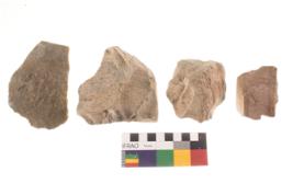 | Description / विवरण | There are n 4 flakes tool; there are multidirectional irregular scar pattern on them; made of short flakes and all four have tapering edges. |
