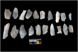 | Description / विवरण | Flake - There are n 20 flakes tool; there are multidirectional irregular scar pattern on them; made of short flakes and all have tapering edges. |