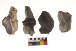 | Description / विवरण | There are n 4 cores; there are multidirectional irregular scar pattern on them. The reverse bulb and platform can be seen. |
