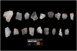| Description / विवरण | There are n 18 flakes tool; there are multidirectional irregular scar pattern on them; made of short flakes and all four have tapering edges. |