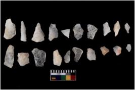 | Description / विवरण | There are n 20 flakes tool; there are multidirectional irregular scar pattern on them; made of short flakes and all four have tapering edges. |