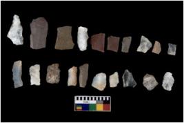 | Description / विवरण | There are n 20 Flake tool; There are multidirectional irregular scar pattern on them. few have blunt edges, Some of them are tapering at one end. |