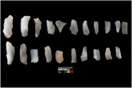 | Description / विवरण | There are n 20 flakes tool; there are multidirectional irregular scar pattern on them; made of short flakes and all twenty have tapering edges. |