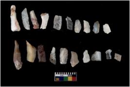 | Description / विवरण | There are n 20 flakes tool; there are multidirectional irregular scar pattern on them, made of short flakes and few have tapering edges. |