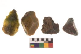| Description / विवरण | There are n 4 cores; there are multidirectional irregular scar pattern on them. The reverse bulb and platform can be seen. |