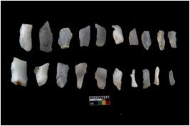 | Description / विवरण | There are n 20 flakes tool; there are multidirectional irregular scar pattern on them; made of short flakes and all twenty have tapering edges. |