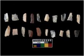| Description / विवरण | There are n 20 flakes tool; there are multidirectional irregular scar pattern on them, made of short flakes and few have tapering edges. |