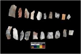 | Description / विवरण | There are n 20 flakes tool; there are multidirectional irregular scar pattern on them, made of short flakes and few have tapering edges. |