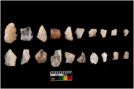 | Description / विवरण | There are n 20 flakes tool; there are multidirectional irregular scar pattern on them, made of short flakes and all have tapering edges. |