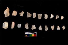 | Description / विवरण | There are n 20 Flake tool; There are multidirectional irregular scar pattern on them. few have blunt edges, Some of them are tapering at one end. |