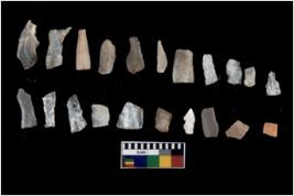| Description / विवरण | There are n 21 Flake tool; There are multidirectional irregular scar pattern on them. few have blunt edges, Some of them are tapering at one end. |