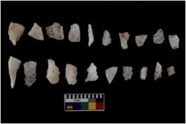 | Description / विवरण | There are n 20 flakes tool; there are multidirectional irregular scar pattern on them; made of short flakes and few have tapering edges. |