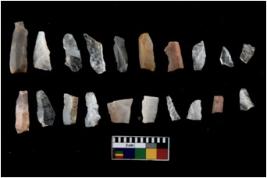 | Description / विवरण | There are n 20 flakes tool; there are multidirectional irregular scar pattern on them, made of short flakes and few have tapering edges. |