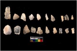 | Description / विवरण | There are n 20 Flake tool; There are multidirectional irregular scar pattern on them. few have blunt edges, Some of them are tapering at one end. |