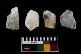 | Description / विवरण | There are n 4 flake cores. All of them are fully fluted flake cores without any trace of crested ridge flakes. Some have flat base. Some have sharp edges while some have blunted edges. |