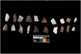| Description / विवरण | Specimen of flakes tool with prominent flaking marks. It made up of a short flakes with sides trimmed. |