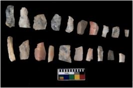 | Description / विवरण | There are n 20 flakes tool; there are multidirectional irregular scar pattern on them, made of short flakes and few have tapering edges. |