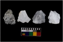 | Description / विवरण | There are n 4 flake cores. All of them are fully fluted flake cores without any trace of crested ridge flakes. Some are tapering at one end. Some have flat base and few have sharp edges. B |