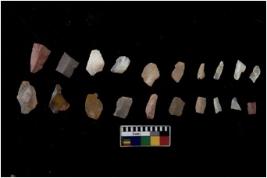 | Description / विवरण | Specimen of flakes tool with prominent flaking marks. It made up of a short flakes with sides trimmed. |