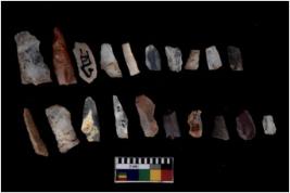 | Description / विवरण | There are n 20 Flake tool; There are multidirectional irregular scar pattern on them. few have blunt edges, Some of them are tapering at one end. |